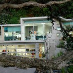 Built on the second street frontage of the 800m2 steeply contoured coastal property the building provides for multi- purpose use and has the potential to generate alternative income. It represents the belief that good design can be economical and sustainable for all.